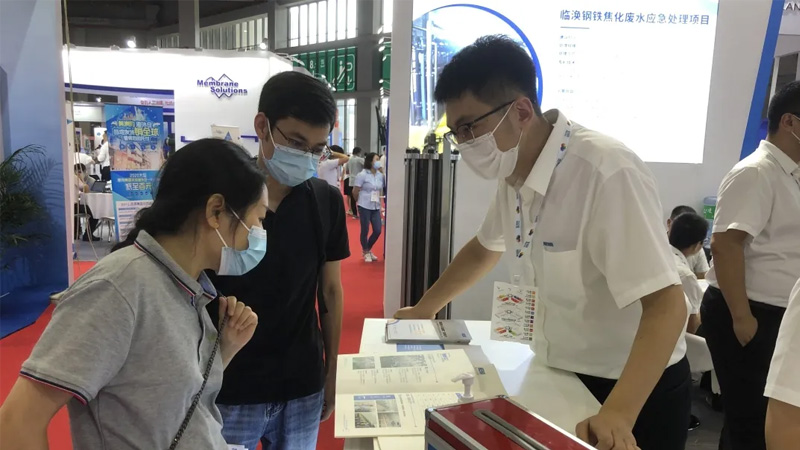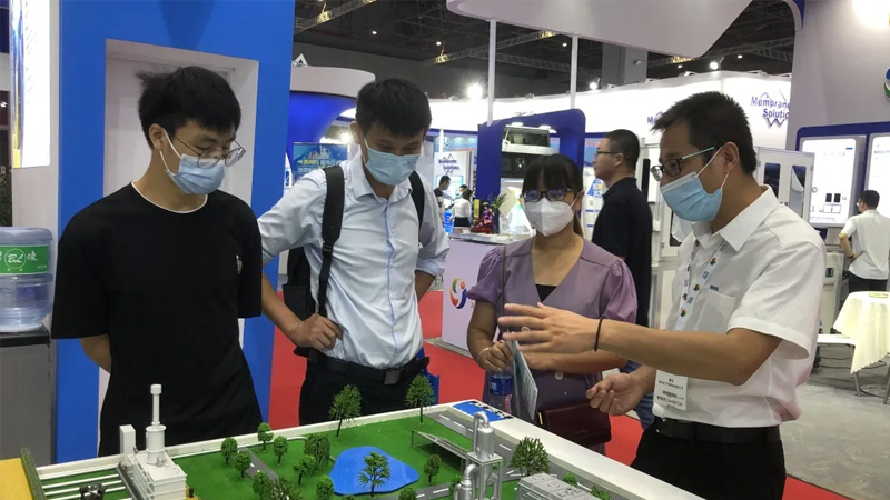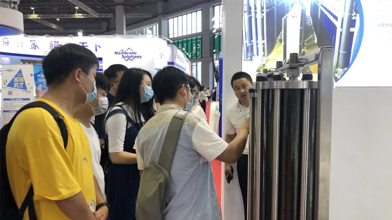 雖然展會期間天氣炎熱,但是酷暑并沒有阻擋住客戶的腳步和熱情。金正環(huán)保帶著第三代導(dǎo)流盤、100bar膜組件、DTRO試驗樣機(jī)和CDRO系列膜組件,以及各領(lǐng)域的解決方案、核心工藝包贏得了眾多工程公司和客戶的青睞,關(guān)注、咨詢的人絡(luò)繹不絕,熱鬧非凡。