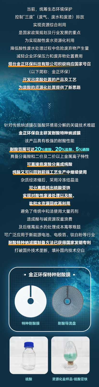 膜技術(shù)前沿丨煙臺(tái)金正環(huán)保耐酸平板膜攻克酸性廢液資源化處理難題,助力循環(huán)經(jīng)濟(jì)發(fā)展
